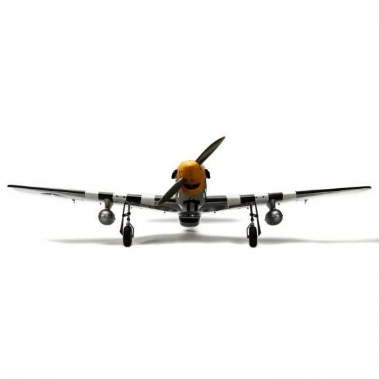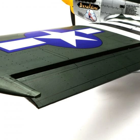 No matter how you look at it, this Mustang is an impressive model for its size. Its two-piece wings smoothly connect with the scale wing fillet and distinct air scoop to lock-in without any need for tools. Control surfaces feature airfoil-shape design for smoother flight, and scale hinge lines with factory drilled hinges for easy installation. You can take the scale experience higher by replacing the rugged fixed landing gear with E-flite® electric retracts available for both the main and tail wheel locations. Functional flaps allow for a wider flight envelope that includes shorter takeoffs and slower landing speeds.