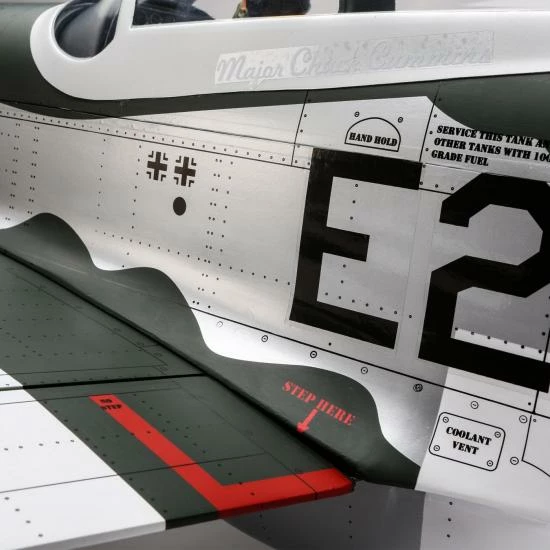 Laser-cut, lightweight balsa and plywood construction is utilized to bring the P-51D Mustang 20cc to life as a durable scale model that’s expertly built to exacting standards.