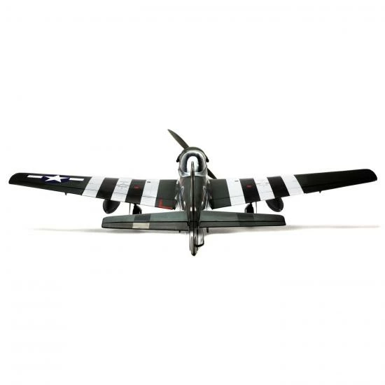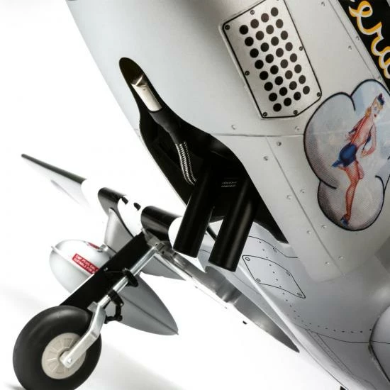 Beyond the factory applied satin-finish printed covering, other iconic details include airfoil-shaped tail surfaces, realistic engine exhaust, wing guns, gear doors, optional-use drop tanks, radio antenna, a 3D instrument panel and a painted pilot figure—just to name a few.