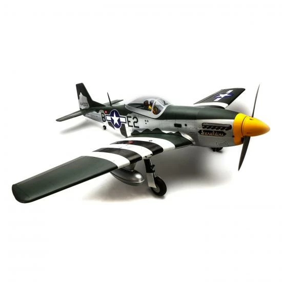 The P-51D Mustang 20cc is designed to accept the Evolution® 20GX, 20cc gas engine, a Saito FG-21, 21cc four-stroke or E-flite Power 60 brushless electric outrunner motor system with a 6S LiPo battery. All hardware needed to install any of the recommended power system is included along with an electric motor mount so you can get to assembly right away and in the air faster. This 20cc ARF is also the perfect replacement airframe for the stock motor, ESC, and recommended flight battery used in the giant E-flite® Carbon-Z® T-28.